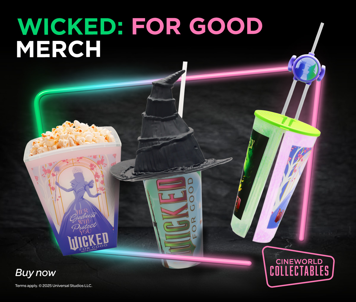 popcorn and 1 x Cineworld Exclusive (in UK & Ireland) Wicked: For Good Double Wall LED Popcorn Bucket for β¬24.99. This offer includes 1x Cineworld Exclusive (in UK & Ireland) Wicked: For Good Dual Chamber Cup, 1x Large ICEE, 1x large popcorn and 1 x Cineworld Exclusive (in UK & Ireland) Wicked: For Good Double Wall LED Popcorn Bucket for β¬24. 99. Promotion valid from 04 December 2025.