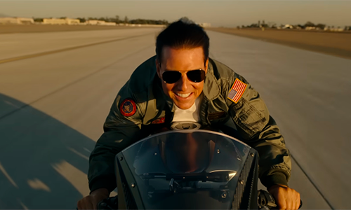 The pilot fledglings are in the training room, waiting for instruction. They’re eager to learn, so they can take their turn in the skies. Maverick wants to prove anything’s possible, even on a seemingly impossible mission. But he wants to show not tell, so he flies the canyon run himself as the squadron watch in admiration, proving his mettle as a mentor. And he smashes it, well under target time – showing them how it’s done. Hands down, he’s still got it.