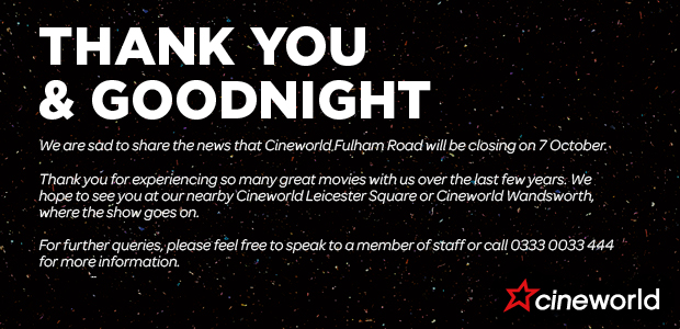 Cineworld Fulham Road is now closed for business but will transition into a Picturehouse cinema later this year.